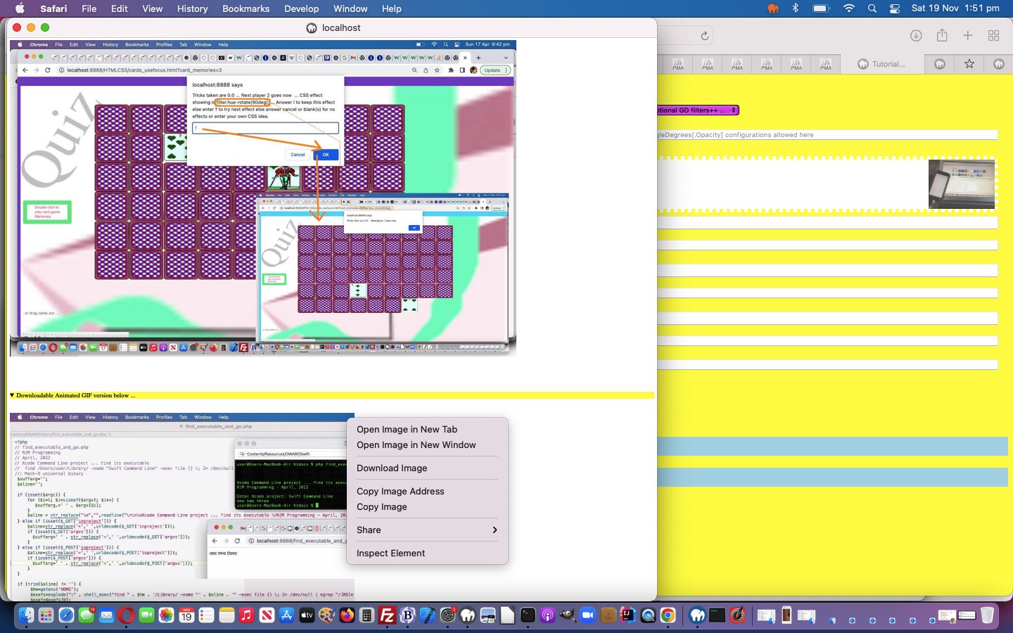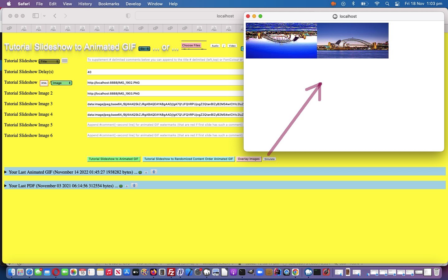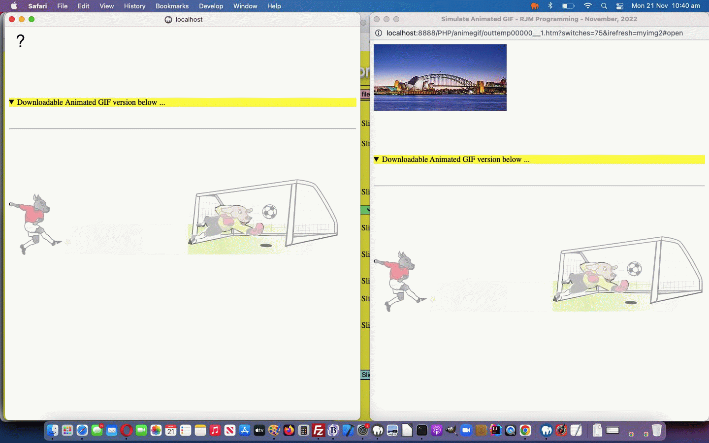 So we changed the Jeroen van Wissen’s inspired PHP (“PHP writes PHP” methodology) code tutorial_to_animated_gif.php code allow for this extra animated GIF data URI representation in a new additional HTML iframe (containing the animegif.html of code below) that when harnessing existant web browser (Windows right click or Mac OS X two finger gesture) functionality can glean for us, as required, that animated GIF’s data URI representation. But don’t get too excited about this being rocket science, in that with a bit of effort, and PHP, it could have been gleaned from what we already produced, in that (in PHP “land”) …