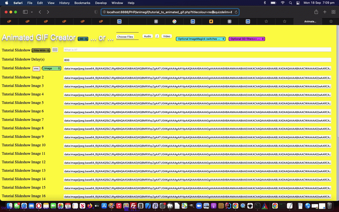 … and we’re using that talent ImageMagick has to offer the user the chance, at any animated GIF slide textbox, the chance to enter encodeURIComponent and window.btoa sensitive entries whose (content) format could match (one of) …
