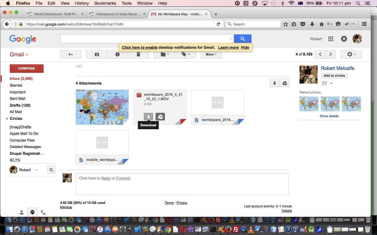 … and if they download in that order, they should be able, on non-mobile platforms, to be able to double click (in the (hard disk) Downloads folder or, if within an email client like Gmail, click the latest of the downloaded files list up in the top right icons “list”, which you can see happening in today’s tutorial picture) the “web application” to have a clickable image web application come up in their default web browser, as you can see with today’s tutorial picture. Not sure, as of writing, what arrangements will be on mobile platforms.