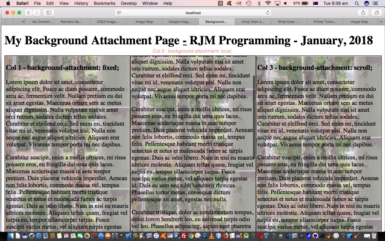 You can try this out with our live run link that has underlying HTML and CSS and Javascript background_attachment.html.