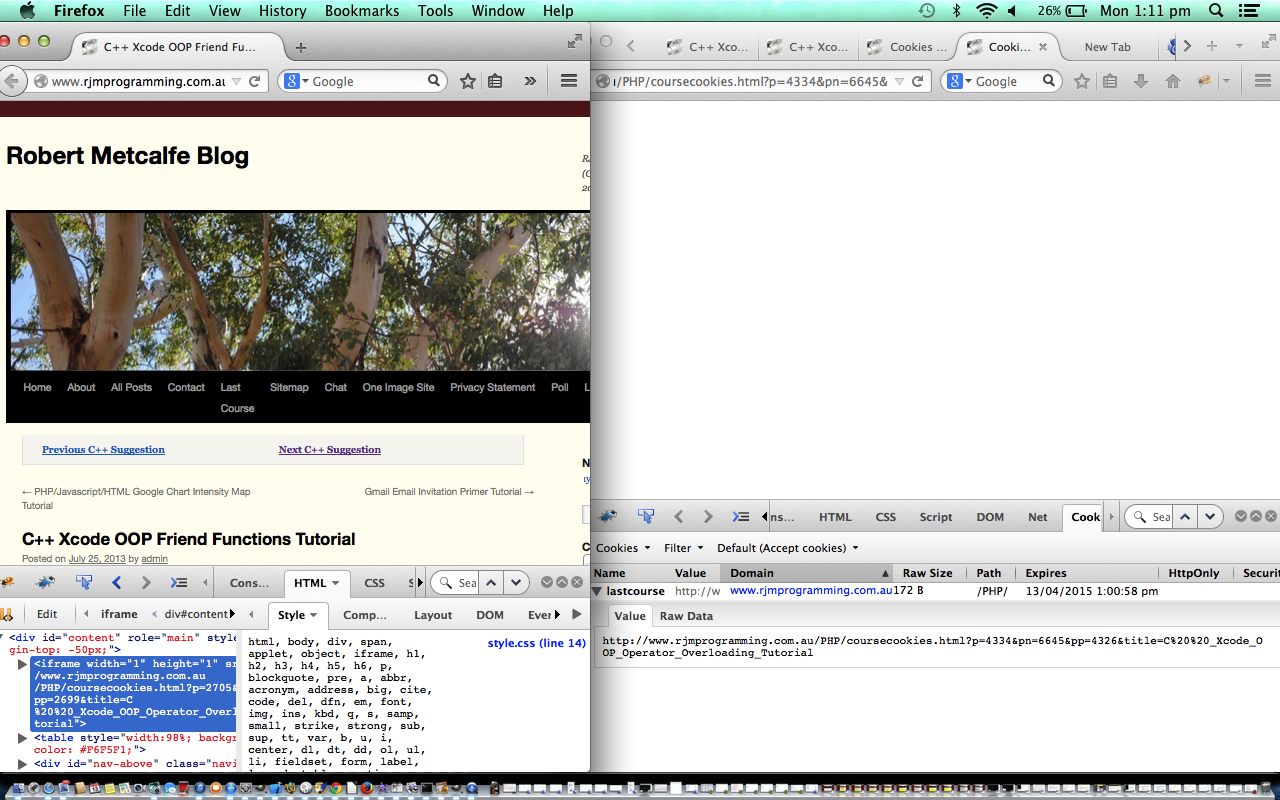 When you are programming, unit testing and/or debugging a Javascript job involving cookies like WordPress Blog Course Design Cookies Tutorial, as shown below, what can you use to know how you are going?