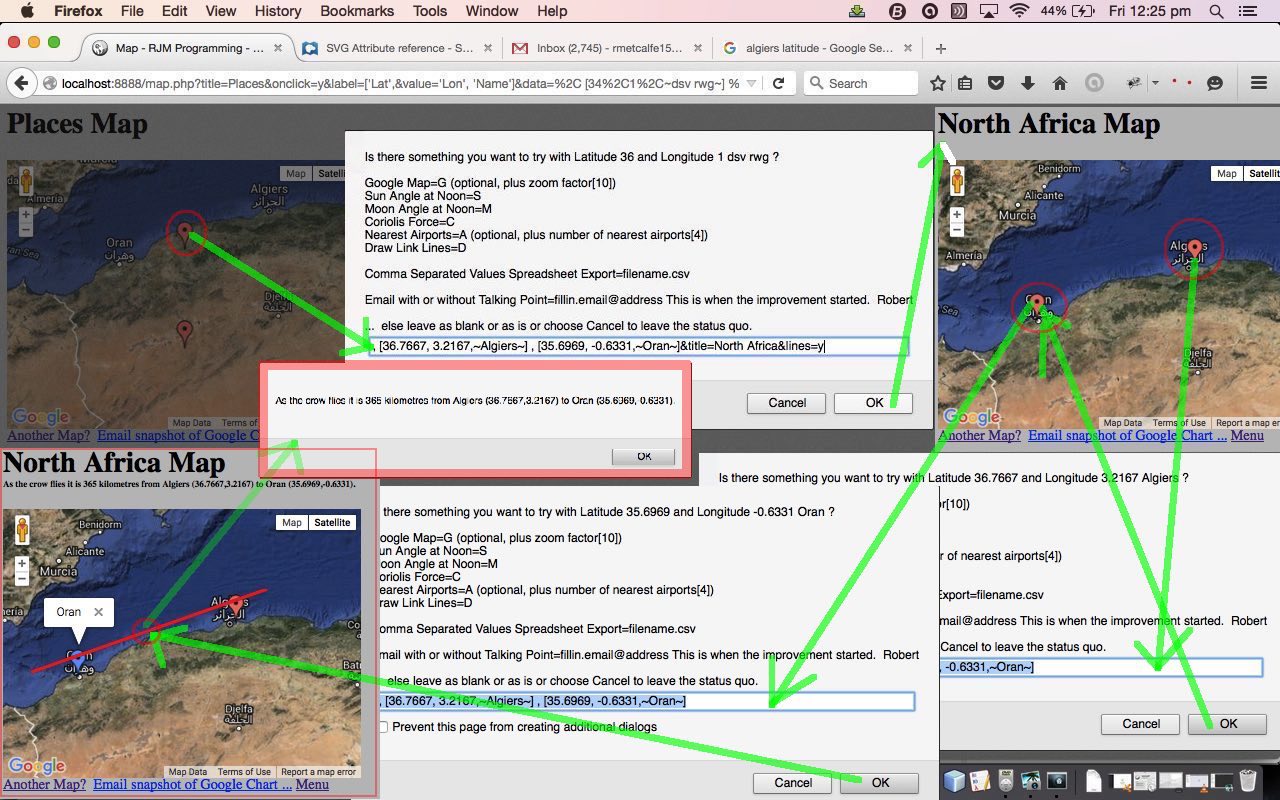 - HTML/Javascript Where Does It Get Me To Primer Tutorial live run uses HTML/Javascript programming source code distance_from.html (changed as per distance_from.html for overlay line functionality)