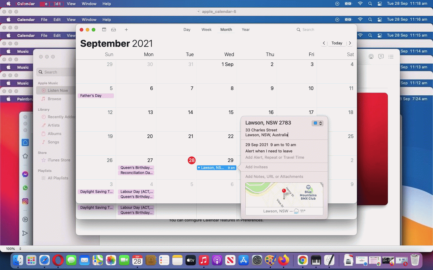 And so, being reminded on an upgrade of our macOS version to Big Sur version 11.6 the other day, opening the macOS Calendar desktop application version 11.0 (2811.5.1) (as we did earlier, with a previous version, with Calendar iCal Integration Itinerary Time Tutorial), that locations were honoured with an Apple Maps integration (should you permit Location Services to help you) along with news about Siri integration improving Calendar’s AI credentials, we were pretty much tickled pink to be combining the “when” with the “where” in the one desktop application.