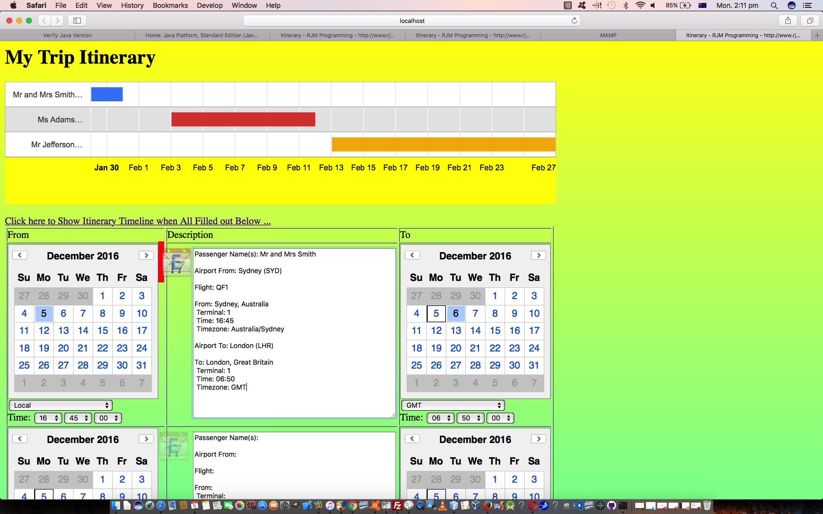 … “shaped” into a web application suitable to enter Itinerary information and then be able to associate these Timeline Start and End Events with iCal Calendar Starts and Ends to events, created …